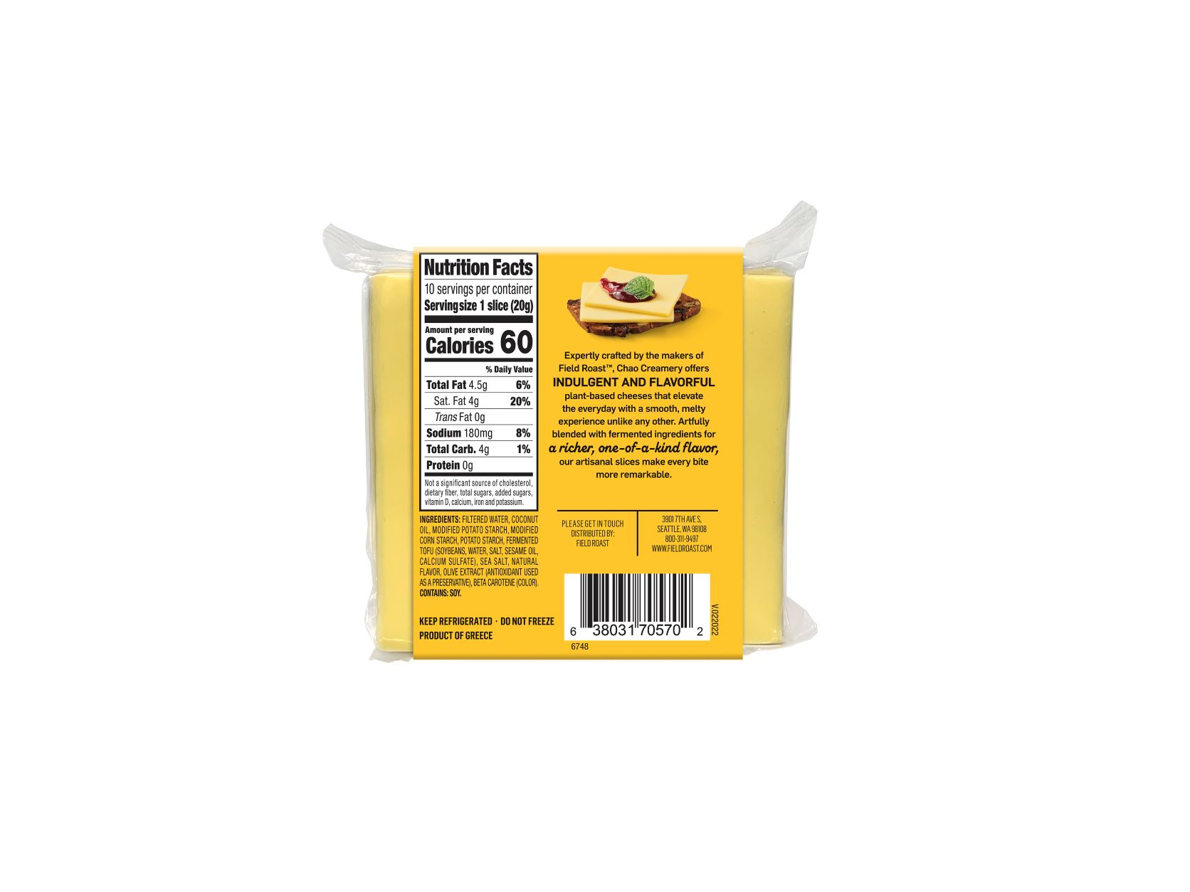 Field Roast Vegan Plant Based Dairy Free Chao Creamy Original Cheese Slices 22 pounds Pack of 4. Track calories carbs fat and 18 other key nutrients. Start your food diary today.